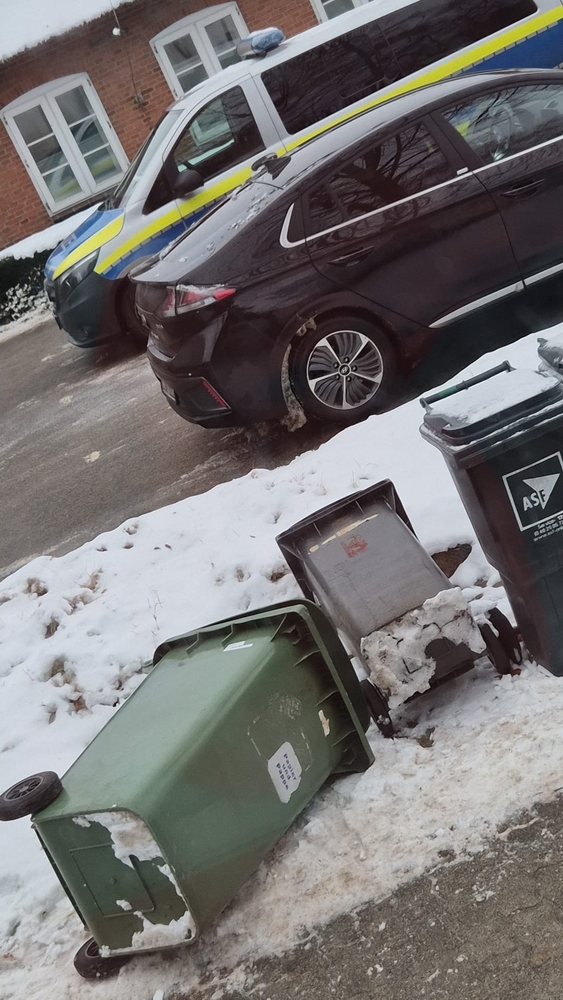 So kann der Behälter nicht auf die Straße geweht werden und den Verkehr gefährden. Stichwort: Verkehrssicherungspflicht.